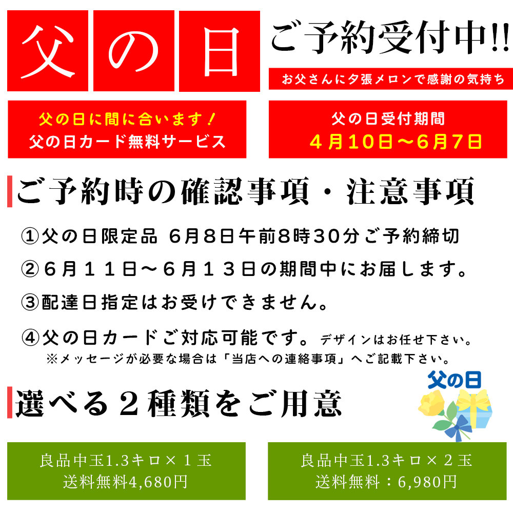 今年の父の日6月14日に間に合うよう、6月11日~6月13日に夕張メロンをお届けいたします。