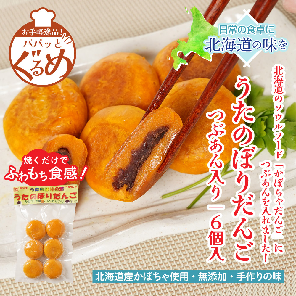 【お手軽調理】うたのぼりだんご かぼちゃだんご粒あん入り6個入り 北海道のソウルフード