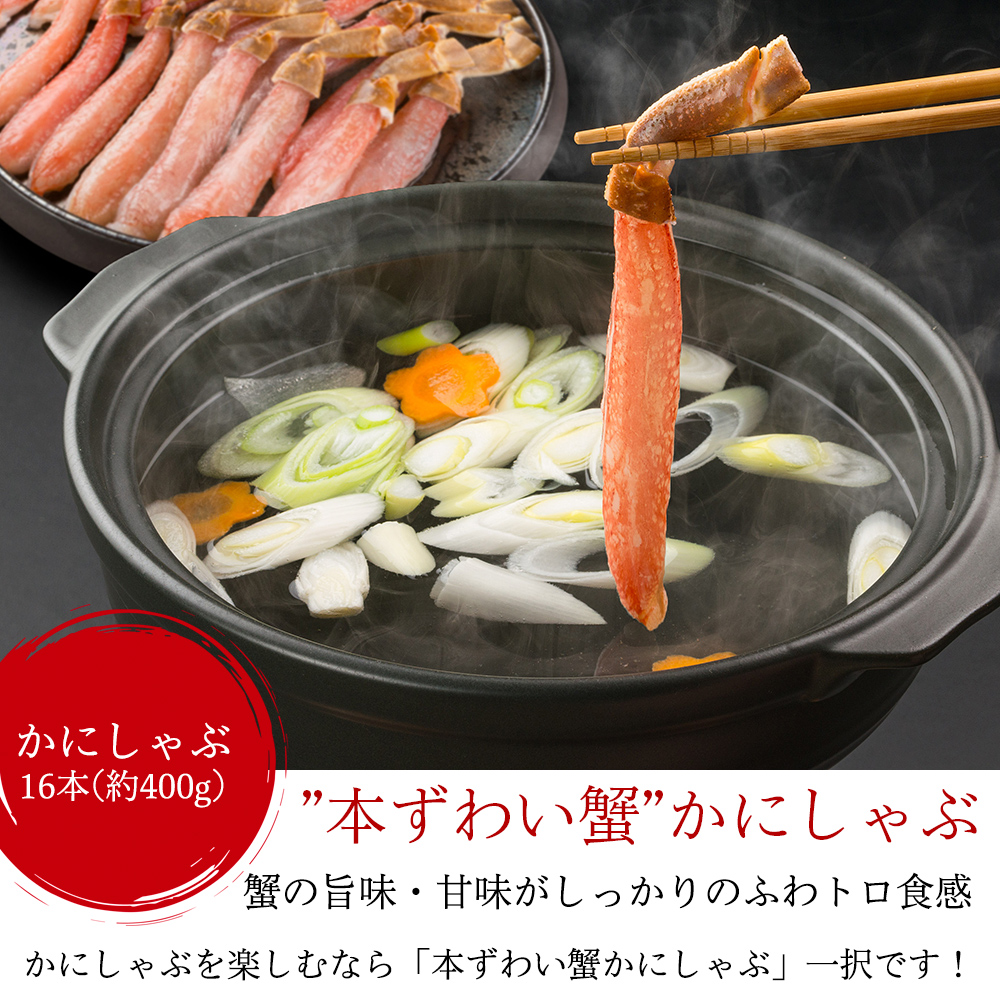 【超早割】【送料無料】最北端海鮮しゃぶしゃぶセット(かにしゃぶ16本・たこしゃぶ400g・雑炊用カニフレーク・ポン酢醤油たれ4袋・出汁用利尻昆布)