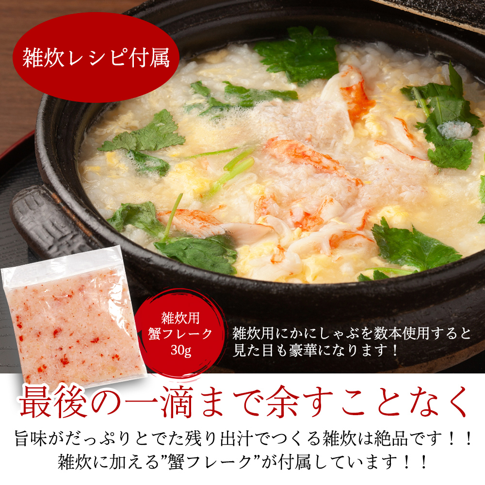 しゃぶしゃぶに加えて、最後の一滴まで美味しくお楽しみいただくために「〆の雑炊」用の蟹フレークも付属♪