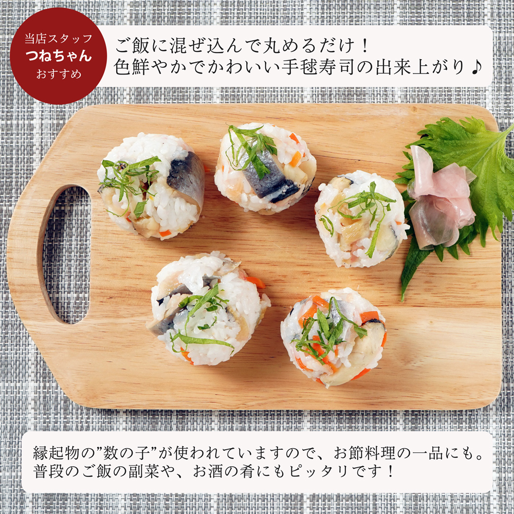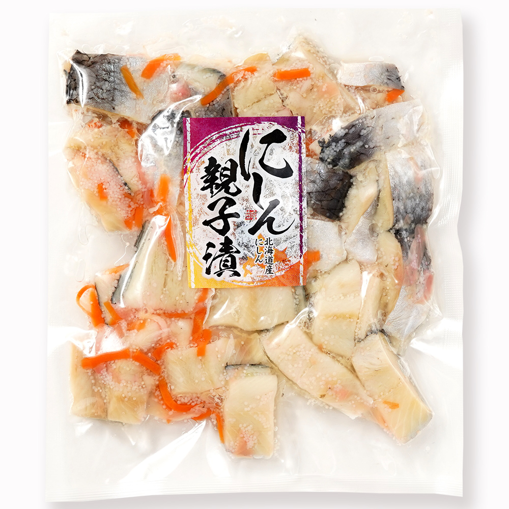 脂のりのよい新鮮な北海道産にしんを甘酢漬けにし、プチプチ食感の数の子を合わせた、にしんの「親子漬け」です。すっきりとした甘酸っぱい美味しさと、数の子のプチプチ弾ける食感はクセになる美味しさです。- 原材料・内容量